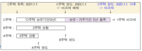 (ÇöÇà) 3ÁÖÅÃÀÚÀÇ °æ¿ì º¸À¯/°ÅÁֱⰣ Àç±â»ê½Ã ºñ°ú¼¼ ½ÃÁ¡=>2021.1.1 ÃëµæÇÑ CÁÖÅà º¸À¯/°ÅÁֱⰣÀÌ 2023.1.1ºÎÅÍ Àç±â»ê