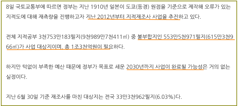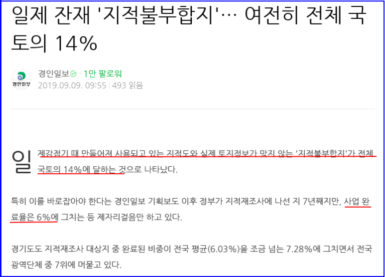¡ßÁöÀûºÒºÎÇÕÁö(µî·Ï»çÇ× Á¤Á¤ ´ë»ó ÅäÁö)¶õ? ¢¡ ÁöÀû°øºÎ¿¡ µî·ÏµÇ¾î ÀÖ´Â ÅäÁöÀÇ °æ°è, ¸éÀû, À§Ä¡°¡ ½ÇÁ¦ ÇöȲ°ú ¼·Î ÀÏÄ¡ÇÏÁö ¾Ê´Â ÅäÁö¸¦ ¸»ÇÕ´Ï´Ù ¡ßÁöÀûºÒºÎÇÕÁö ÇöȲ ÁöÀûºÒºÎÇÕÁö ¾ó¸¶³ª µÇ´ÂÁö °æÀÎÀϺ¸(19.09.09) º¸µµ ÀڷḦ Åä´ë·Î »ìÆìº¸¸é, Àüü ±¹ÅäÀÇ 14%¸¦ Â÷ÁöÇϰí ÀÖ´Ù°í ÇÕ´Ï´Ù ¹®Á¦°¡ ½É°¢ÇÏ´Ù´Â °ÍÀº Á¤ºÎ¿¡¼µµ ÀÌ¹Ì ¾Ë°í ÀÖ´Â »ç½ÇÀ̰í 2012³âºÎÅÍ ÁöÀû ÀçÁ¶»ç »ç¾÷À» ÃßÁøÇϰí Àִµ¥ ¿Ï·áÀ²Àº 6%¿¡ ºÒ°úÇÏ´Ù´Â °Í, 2030³âÀ» ¸ñÇ¥·Î ÇÏ¿´À¸³ª ÇöÀç ¿¹»ê ¹èÁ¤ »óÅ·Πº¼ ¶§´Â 2047³âÀÌ ³Ñ¾îµµ ¾î·Á¿ï °ÍÀ̶ó´Â ³»¿ëÀÇ º¸µµ°¡ À̾îÁö°í ÀÖ½À´Ï´Ù º¸µµ ³»¿ë¸¸À» ±âÁØÀ¸·Î º¸¸é ÅäÁö 10ÇÊÁö Áß 1.5ÇÊÁö´Â ÁöÀûºÒºÎÇÕÁö¿¡ ÇØ´çµÇ´Â °ÅÁö¿ä ³²ÀÇ ¹®Á¦¸¸Àº ¾Æ´ÏÁö¿ä! ³»°¡ ¼ÒÀ¯Çϰí ÀÖ´Â ÅäÁö°¡ "ÁöÀû ºÒºÎÇÕÁö"ÀÎÁö ¾Æ´ÑÁö, ²À »ìÆì º¸¾Æ¾ßÇÒ ÀÌÀ¯°¡ ¿©±â¿¡ ÀÖ´Â °ÍÀÔ´Ï´Ù ¡ßÁöÀûºÒºÎÇÕÁö ¹ß»ý ¿øÀÎ ¨çµµ¸é ÃàôÀÇ ´Ù¾ç¼º ¨èÃø·®¿øÁ¡ÀÇ ÅëÀϼº °á¿© ¨éÇàÁ¤±¸¿ª °æ°èÀÇ ¼³Á¤ ¿À·ù ¨êÁöÀûµµ¸é °ü¸®ÀÇ ºÎ½Ç ¨êÁöÀû µµ¸é ÀçÀÛ¼ºÀÇ ºÎÁ¤È®°ú ÁöÀûº¹±¸ ¿À·ù ¡ßÁöÀûºÒºÎÇÕÁöÀÇ À¯Çü ¢¹ÁöÀû»ó Áö¸ñ°ú ÇöȲ Áö¸ñÀÇ Â÷ÀÌ ¢¹´ëÀå°ú µî±âºÎÀÇ ¸éÀû°ú ¼ÒÀ¯ÀÚ »óÀÌ ¢¹ÁöÀû»ó ¸éÀû°ú ½ÇÁ¦ ¸éÀûÀÇ Â÷ÀÌ ¢¹ÁöÀûµµ»ó À§Ä¡¿Í ½ÇÁ¦ À§Ä¡ÀÇ Â÷ÀÌ ÁöÀûºÒºÎÇÕÁö À¯Çü Áß °¡Àå ¹®Á¦°¡ µÇ´Â ºÎºÐÀº ÁöÀû °øºÎ »ó ¸éÀû°ú ½ÇÁ¦ ¸éÀûÀÇ Â÷ÀÌÀÔ´Ï´Ù ´ëºÎºÐÀº ÁÙ¾îµå´Â °æ¿ìÀ̰í, °£È¤ ´Ã¾î³ª±âµµ ÇÏÁö¸¸ ±ØÈ÷ µå¹® °æ¿ì¿¡ ÇØ´çµÇÁö¿ä ³»°¡ ¼ÒÀ¯ÇÑ ÅäÁöÀÇ ¸éÀûÀÌ °©ÀÛÀÌ ÁÙ¾îµç´Ù¸é... Á» Ȳ´çÇϰÚÁö¸¸ ÀÚÁÖ ¹ß»ýÇÏ´Â »ç¾ÈÀ̶ø´Ï´Ù ¡ßÁöÀûºÒºÎÇÕÁö(µî·Ï»çÇ× Á¤Á¤ ´ë»ó ÅäÁö) ¹®Á¦ ÁöÀû¼Ò°üû¿¡¼ ÁöÀûºÒºÎÇÕÁö¸¦ ¹ß°ßÇϰųª ÅäÁö ¼ÒÀ¯ÀÚÀÇ ½Åû¿¡ ÀǰŠÁöÀû¼Ò°üû¿¡¼ ÅäÁö´ëÀå µî ÁöÀû°øºÎ¿¡ "µî·Ï»çÇ× Á¤Á¤ ´ë»ó ÅäÁö"·Î µîÀçÇϸç ÀÏüÀÇ ÅäÁö ºÐÇÒ µî Ãø·®À» ¼ö¹ÝÇÏ´Â »çÇ×°ú Áö¸ñº¯°æ µî ¸ðµç ÁöÀû Á¤¸®»çÇ×À» Á¤Áö½ÃÅ´ Áï Á¤Á¤ »çÇ×ÀÌ ÇØ°áµÉ ¶§±îÁö´Â »ó´çÇÑ ½Ã°£ÀÌ ¼Ò¿äµÉ ¼ö ÀÖ°í¿ä »ç½Ç»ó ÀÏüÀÇ °ÇÃàÇàÀ§ µî Àç»ê±Ç Çà»ç¸¦ ÇÒ ¼ö ¾ø°Ô µË´Ï´Ù ¡ßÁöÀûºÒºÎÇÕÁö ¸¹ÀÌ ¹ß»ýÇÏ´Â ÅäÁö´Â? ¨ç¹ýÁ¤ ÇàÁ¤±¸¿ª °æ°è¼±¿¡ Á¢ÇÑ ÅäÁö : À¾, ¸é, µ¿, ¸® °æ°èºÎ ¢¡ ÇÑÂÊ¿¡¼ Ãø·®À» ÇØ °¡¸é ¸ô¸®´Â ³¡ºÎºÐ¿¡¼ ÁÖ·Î ¹ß»ýÇÕ´Ï´Ù ¡Ø ÇàÁ¤±¸¿ªÀÌ Á¢ÇÏ´Â ÅäÁö´Â ²À »çÀüÁ¡°ËÀÌ ÇÊ¿äÇØ¿ä ¨èÁÖ¿ä µµ·Î¿Í °æ°è¼±ÀÌ Á¢ÇÏ´Â ÅäÁö ¢¡µµ·Î ºÎºÐ¿¡ Á¤È®ÇÑ Ãø·®ÀÌ ÀÌ·ç¾îÁö¸é¼ °æ°è³ª ¸éÀû º¯°æÀÌ ¼ö¹ÝµË´Ï´Ù ¨éÃàôÀÌ ´Ù¸¥ ÀÓ¾ß(»êÁö)¿Í ÀÏ¹Ý ÅäÁö°¡ ¸¸³ª´Â ºÎÀ§ ¢¡ ÁÖ·Î ÃàôÀÌ Å©°í °æ»çºÎ¿¡ ÇØ´çÇÏ´Â ÀÓ¾ß(»êÁö) ÅäÁö¿¡¼ ¹ß»ýÇϸç, ¸éÀûÀÌ ÁÙ¾îµå´Â °æ¿ì°¡ ¸¹¾Æ¿ä ¡ØÀÏ¹Ý ÅäÁö¿Í ÀӾ߰¡ Á¢ÇÏ´Â ºÎÀ§ÀÇ ÀÓ¾ß ºÎºÐÀº ƯÈ÷ È®ÀÎÀ» ÇÏ¿©¾ß ÇÕ´Ï´Ù ¡ßÁöÀûºÒºÎÇÕÁö ÇØ°áÀº? ¢º´ã´ç : ÁöÀÚü(½Ã, ±º, ±¸Ã») ÁöÀû°ú ¢ºÇØ°á ¹æ¹ý ¨çÅäÁö ¼ÒÀ¯ÀÚ ½Åû¿¡ ÀÇÇÑ ¹æ¹ý ¨èÁöÀû¼Ò°üû Á÷±ÇÀ¸·Î ó¸®ÇÏ´Â ¹æ¹ý ÇöÀç ÁöÀûºÒºÎÇÕÁö¿¡ ´ëÇØ¼´Â Âø¿À°¡ Å©°í ÁöÀûºÒºÎÇÕÀÌ ¸¹ÀÌ ¹ß»ýÇÏ´Â Áö¿ª¿¡ ´ëÇØ¼´Â Á¤ºÎ¿¡¼ "ÁöÀûÀçÁ¶»ç"¸¦ ÅëÇÏ¿© Àϰý ¼öÁ¤ÀÛ¾÷À» ÁøÇàÇϰí ÀÖ½À´Ï´Ù ÁöÀûÀçÁ¶»ç °á°ú¿¡ µû¶ó û»ê ÀÛ¾÷À» ÇØÁÖ°í ÀÖ°í¿ä... Çѵ¥ ¿¹»êÀº ÇÑÁ¤µÇ¾î ÀÖ°í, ½Ã°£Àº ÇÑÂü °É¸°´Ù°í Çϳ׿ä~ ÅäÁö ¼ÒÀ¯ÀÚÀÎ °³ÀÎÀÌ ÇØ°áÇÒ¼ö ÀÖ´Â ¹æ¹ýÀº ¸éÀûÀÌ ÁÙ¾îµå´Â ¸¸Å ÀÚ½ÅÀÌ °¨¼öÇϰí ó¸®ÇÏ´Â ¹æ¹ýÀÌ ÀÖ½À´Ï´Ù ¡ßÁöÀûºÒºÎÇÕÁö ¹ýÀûÀÎ ±Ù°Å ¢¹°ø°£ Á¤º¸ ±¸Ãà ¹× °ü¸® µî¿¡ °üÇÑ ¹ý·üÁ¦ 84Á¶ ¢¹°ø°£ Á¤º¸ÀÇ ±¸Ãà ¹× °ü¸® µî¿¡ °üÇÑ ¹ý·ü ½ÃÇà·É 82Á¶ ÀÌ»óÀ¸·Î ÁöÀûºÒºÎÇÕÁö(µî·Ï»çÇ× Á¤Á¤ ´ë»ó ÅäÁö)¿¡ ´ëÇÑ Àü¹ÝÀûÀÎ »çÇ×À» ¾Ë¾Æº¸¾Ò½À´Ï´Ù. ÁöÀûºÒºÎÇÕÁö¿¡ ÇØ´çÇÏ¸é »ç¾È¿¡ µû¶ó¼´Â »ó´çÈ÷ ±ä ½ÃÀÏÀÌ °É¸± ¼öµµ ÀÖ½À´Ï´Ù »çÀü¿¡ ¼ÕÀÍ ¿©ºÎ¸¦ °ËÅäÇØ º¸½Ã°í, °æ¹ÌÇÑ »çÇ×À̰ųª ±ä±ÞÀ» ¿äÇÏ´Â °æ¿ì´Â ³»°¡ Á¶±Ý ¼ÕÇØ º¸°í ó¸®ÇÏ´Â °Íµµ ÁÁÀº ¹æ¹ý Áß Çϳª°¡ µÉ ¼ö ÀÖ½À´Ï´Ù ±âŸ ´õ ±Ã±ÝÇÑ »çÇ×Àº ÅäÁö°¡ À§Ä¡Çϰí ÀÖ´Â ÇØ´ç ÁöÀÚü(½Ã,±º,±¸Ã»)ÀÇ ÁöÀû°ú¿¡ ¹®ÀÇ ÇÏ½Ã¸é ¾È³»¸¦ ¹ÞÀ¸½Ç ¼ö ÀÖ½À´Ï´Ù |